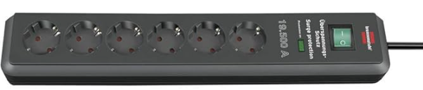 La Secure‑Tec es una regleta de alta calidad de Brennenstuhl, con 4 tomas con toma a tierra, cable de 2 m, interruptor bipolar iluminado y protección contra sobretensiones de hasta 19 500 A. Las tomas están dispuestas en ángulo de 45 ° para enchufes grandes, e incluyen protección infantil. Cuenta con indicador luminoso que muestra cuándo la protección está activa.
